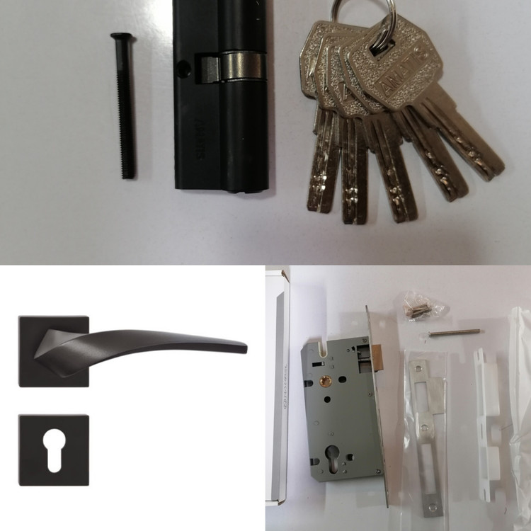 ست کامل قفل و دستگیره دو تکه و سیلندر مشکی