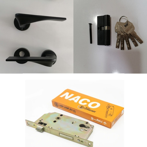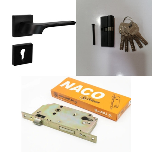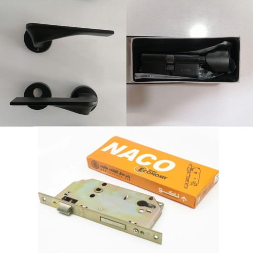 ست کامل قفل و دستگیره دو تکه و سیلندر مشکی
