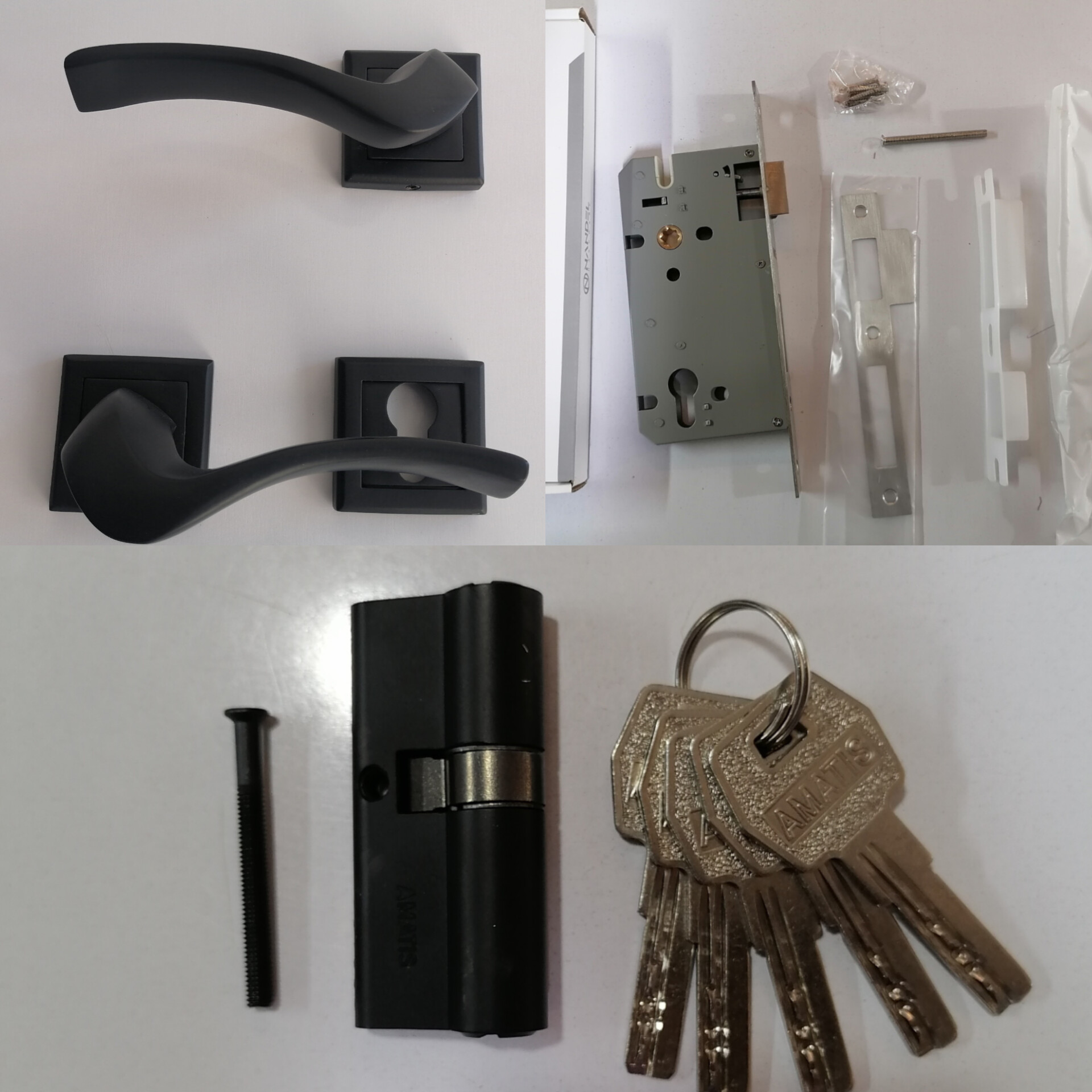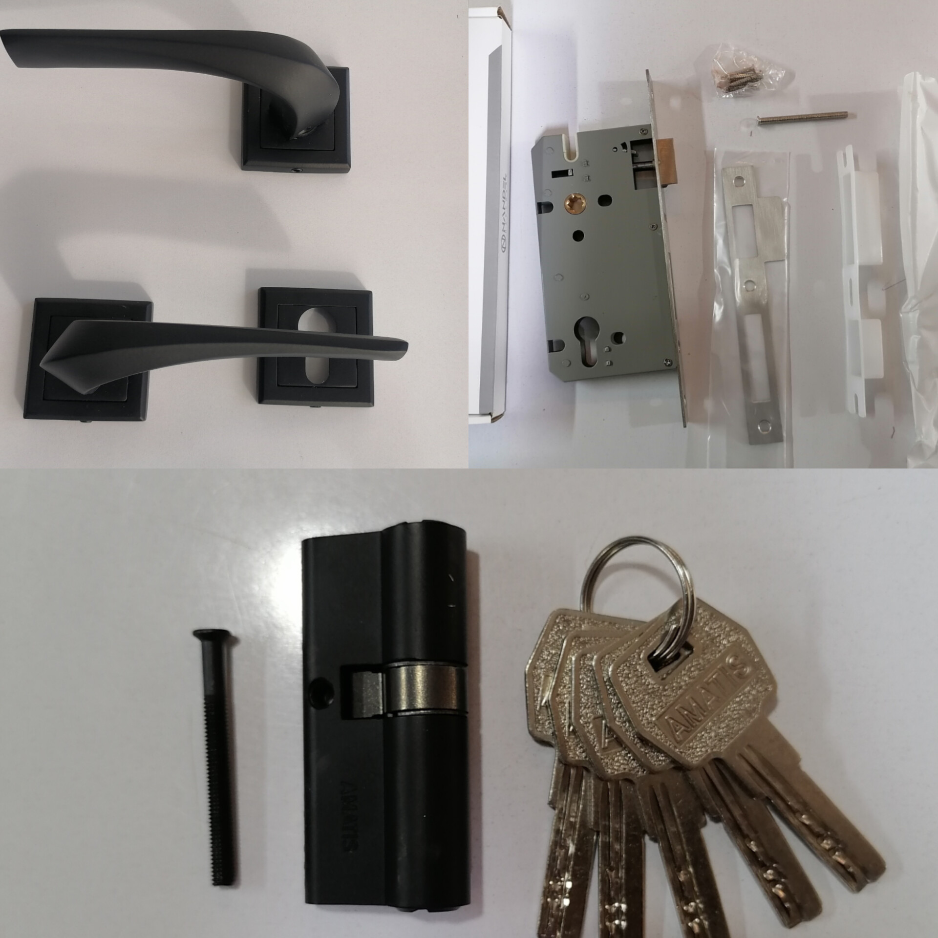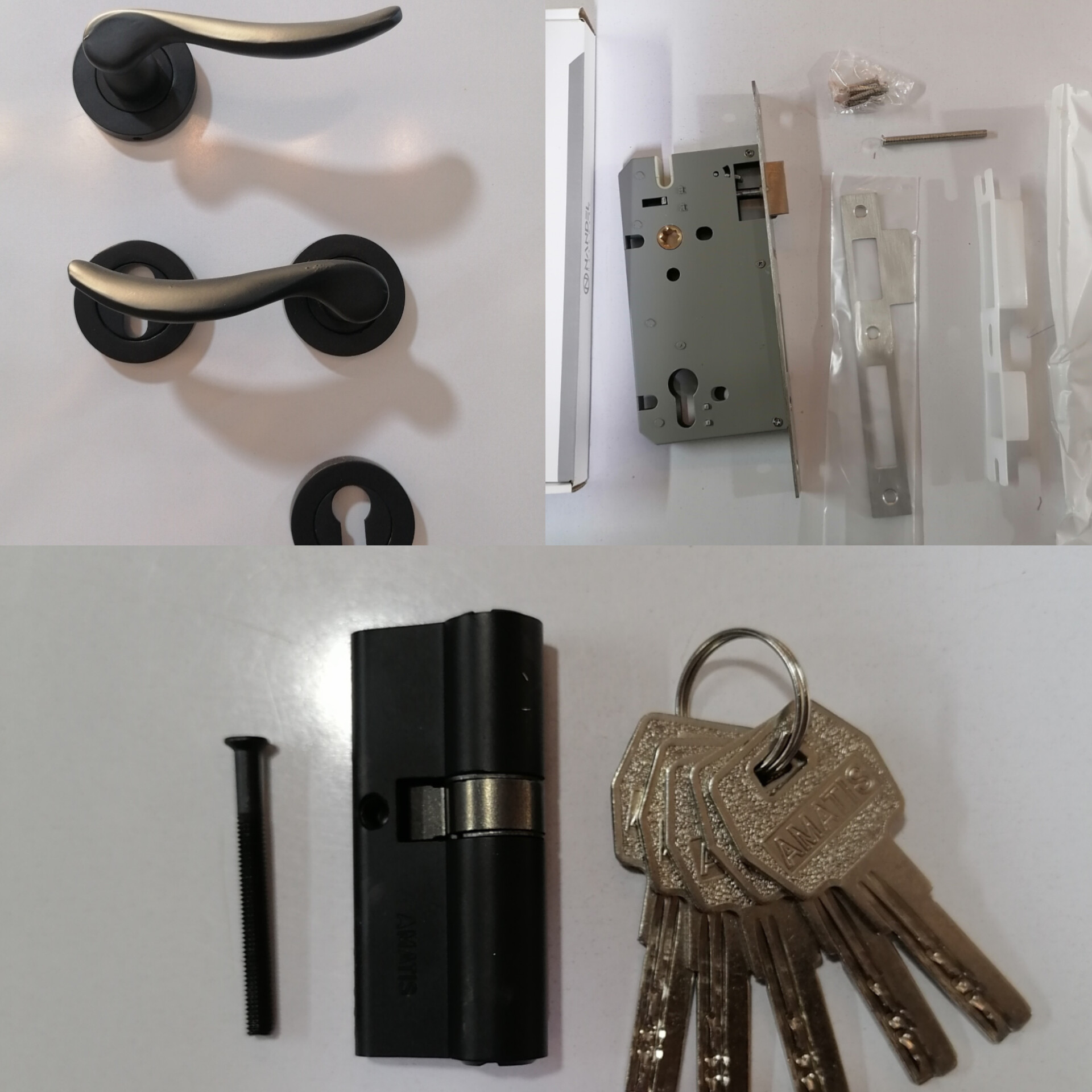 ست کامل قفل و دستگیره دو تکه و سیلندر مشکی